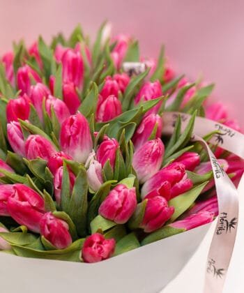 Букет розовых тюльпанов — яркое дыхание весны. Розовые тюльпаны создают жизнерадостную гармонию, которая украсит Ваше торжество. Букеты тюльпанов доставляются по всему Клайпедскому региону.