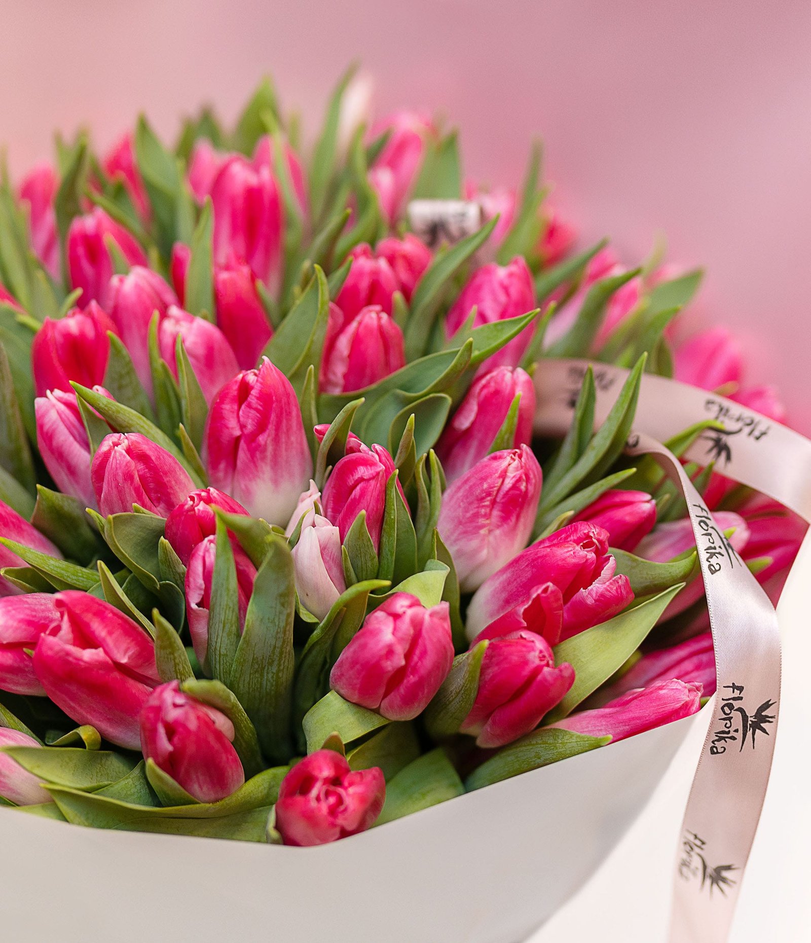 | Puokštės dydis | Maža (25 tulpės), Vidutinė (35 tulpės), Didelė (51 tulpė), Ypač didelė (101 tulpė) |